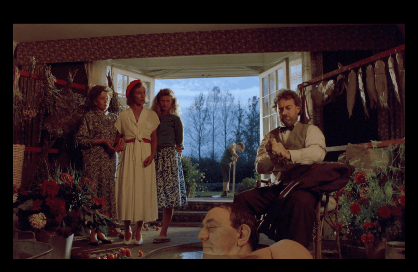 When casting the film, Greenaway chose to work with stage actors—classically trained players who embodied stiff, half-eccentric English stereotypes. Of the three leading ladies, he later remarked that: “these three extraordinary ladies have all got, I think, a reputation for being associated very much with British theatre, so they come along dragging their cultural baggage with them [...] I think that sort of artificiality is built into their dialogue and essentially built into their performance.” This casting choice was one of many layers of artifice Greenaway applies; the film thoroughly acknowledges itself as a film, imparting more of a staged, storybook quality than an immersive experience.