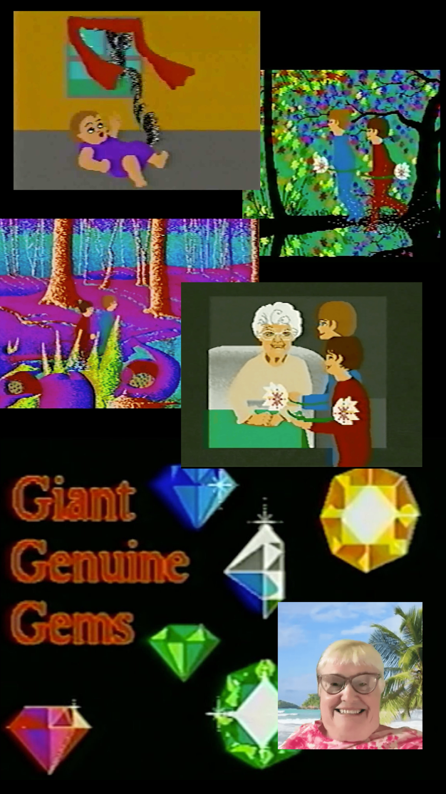 In looking at the wonders of Amiga design, we at Eternal can’t go without mentioning the animated series by Lynn Ochberg: The Films of Nanny Lynn. Initially a homemade film project, this series was lost and later rediscovered when bootlegged VHS tapes surfaced at a Michigan video store. Soon after, the tapes built a cult following in underground film and noise circles, tracing back to surprising origins: the home studio of a loving grandmother.