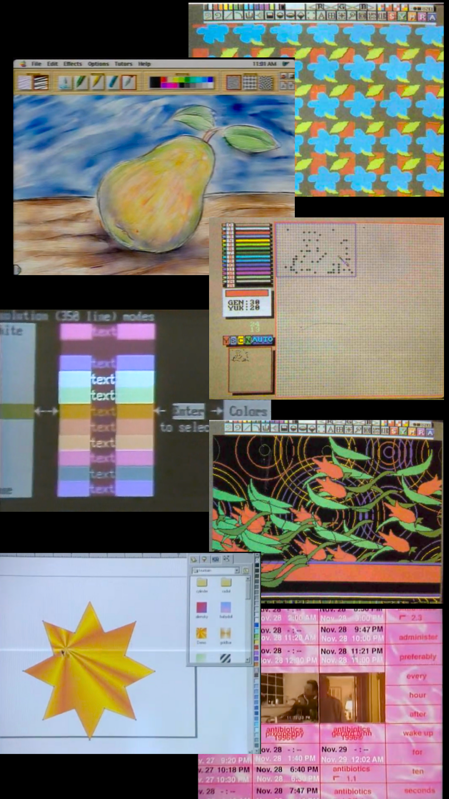 Stills from Art Dabbler, Amiga Handbooks an AMIGA Colour palette of ‘Colours Not Found in Nature’