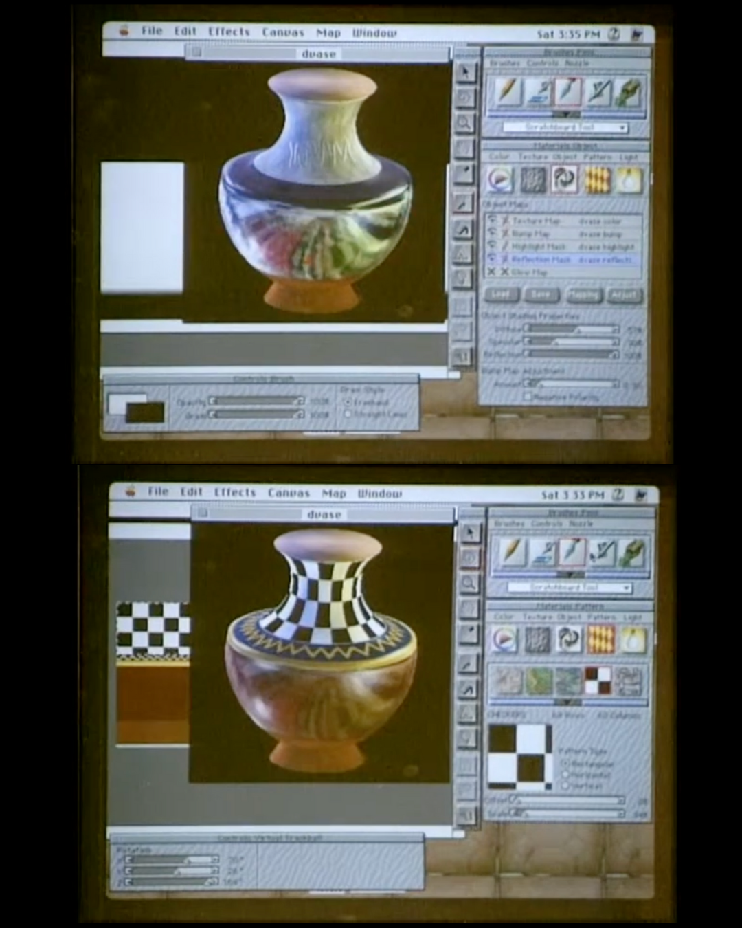 Another interesting example of a 2D animation program is seen in Michaël Gaumnitz’s 1987 short animation compliation: FEMMES, all hand illustrated on a graphic tablet. The artist styles computer graphics in the fauvist tradition, using the recording features of the Graph 8 program to create animations that were at once handmade and computer-generated.