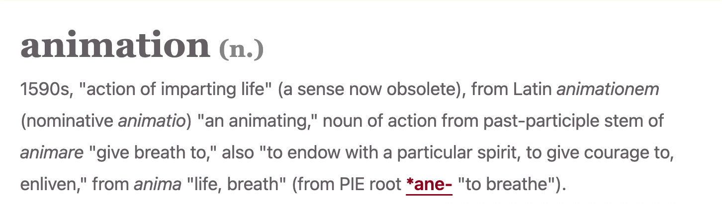 At its linguistic and philosophical root, the word animation means to breathe life, or somehow impart energy to another thing. Literal or metaphoric! The life-force in question is called the anima. All creatures possess this life force, to varying degrees, and some things reflect this energy back at us. It is an innate human tendency to animate; we naturally attribute a sense of spirit or inner energy to objects around us; we feel inspiration and make things come to life. This is what animated films do best, taking an object, giving it an ‘energy’ through artistic decisions and technical abilities, and create a little window into the soul.