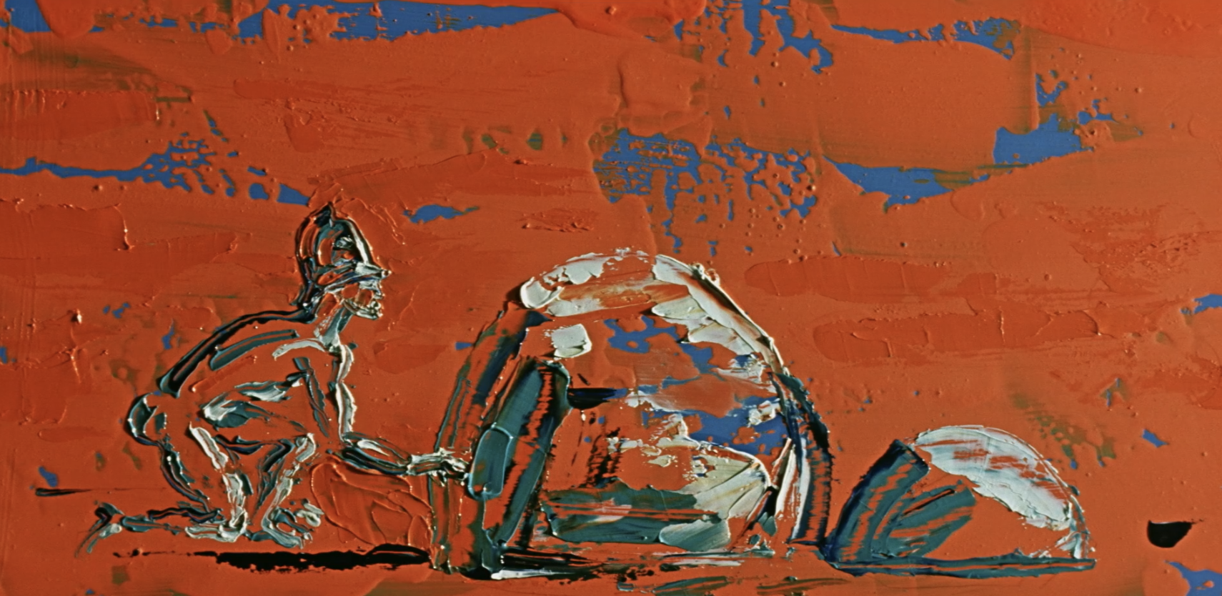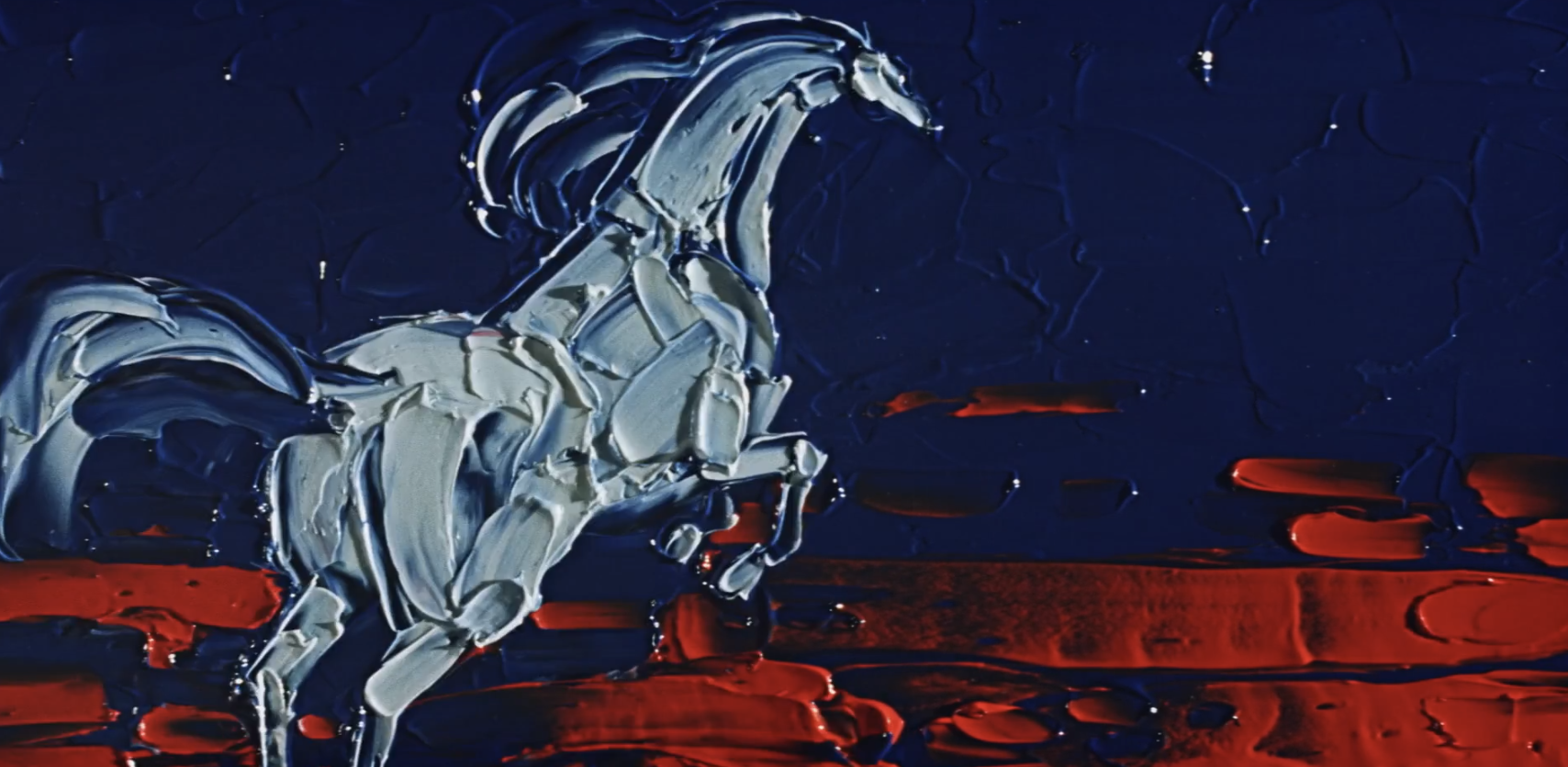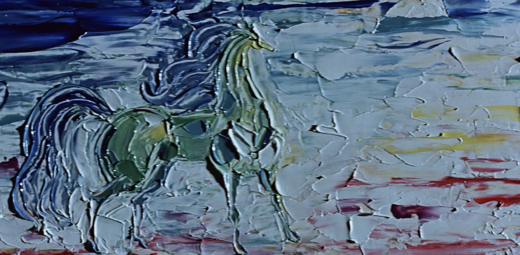 Extremely rare card. Seen here in Horse, paint animation is a visually spectacular technique of painting on a surface directly under the camera, and developing the painting frame-by-frame. Giersz applied an oil paint on a board under the camera, then modified and photographed it repeatedly to create the illusion of movement. Absolutely majestic work Witold.