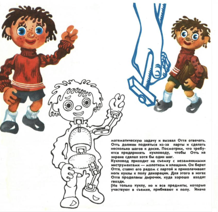 Behind-the-scenes mechanics of Ott in Outerspace (1961) as seen in Russian/Estonian animation handbook. Ожившие сказки 1977 | Fairy Tales Come to Life by Silvia Kiik