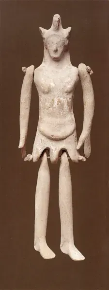 Fig 1: Greek Terracotta puppet, ca. 5th century BC, Fig 2: Greek Terracotta Bell Idol, circa 700BC, Figs 3 & 4: Figurines from Polish visionary animator Piotr Kamler's film Chronopolis.