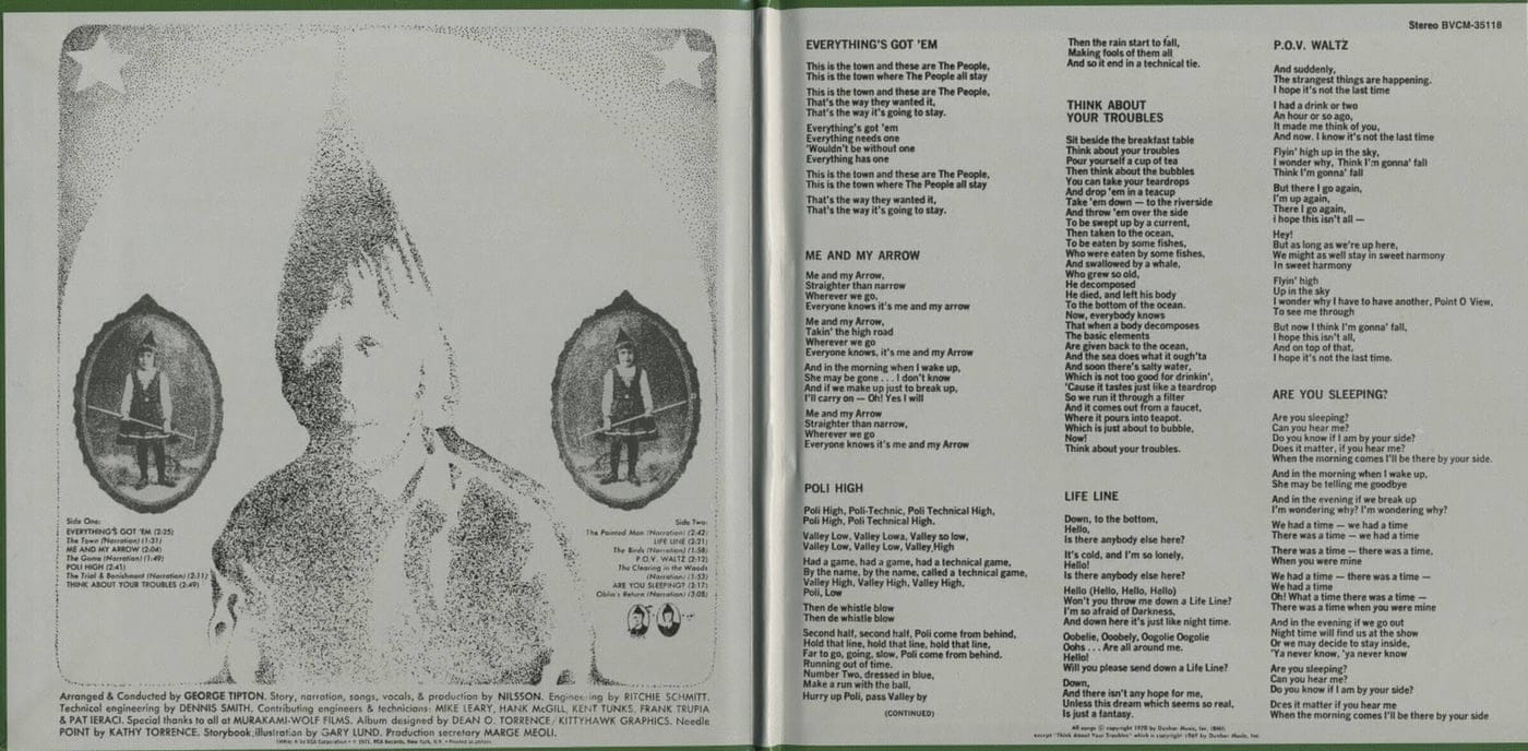 Nilsson was a longtime friend of the Beatles, their paths crossing when he was a young musician, newly signed to RCA while the Beatles were at their peak. When they met, the connection was instant, and The Point! marks only the beginning of a decades-long friendship with the group, particularly John and Ringo. Nilsson's career around this time was both prolific and pioneering: he even created the first remix album [Aerial Pandemonium Ballet, 1971] released the same year as The Point, and was the first major artist to have a Top 10 hit without touring.