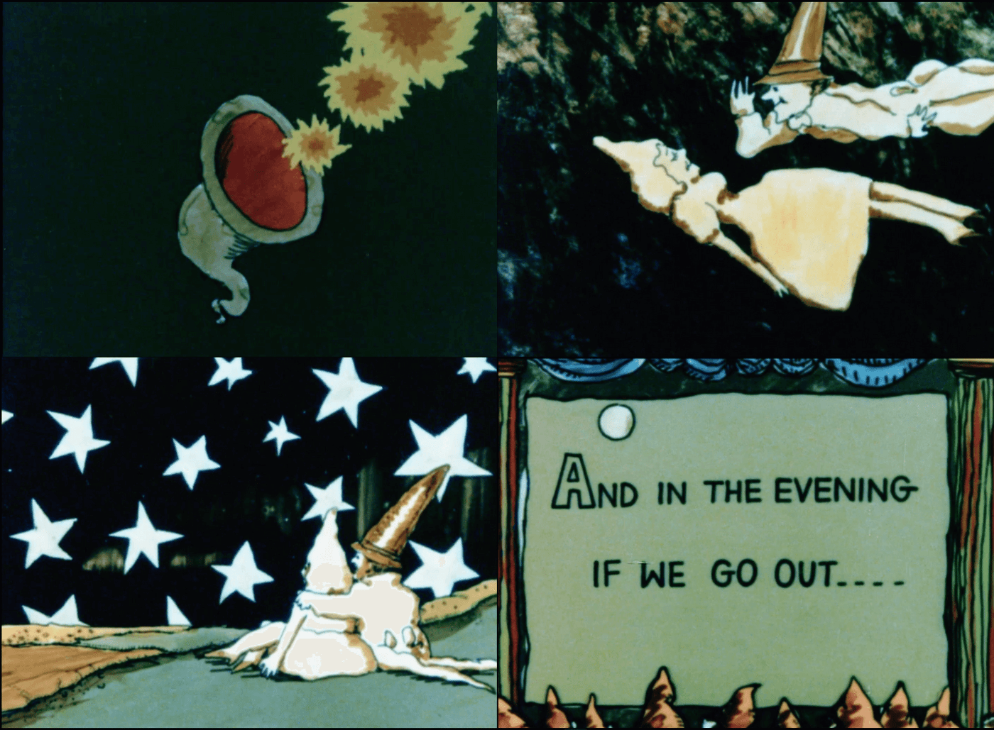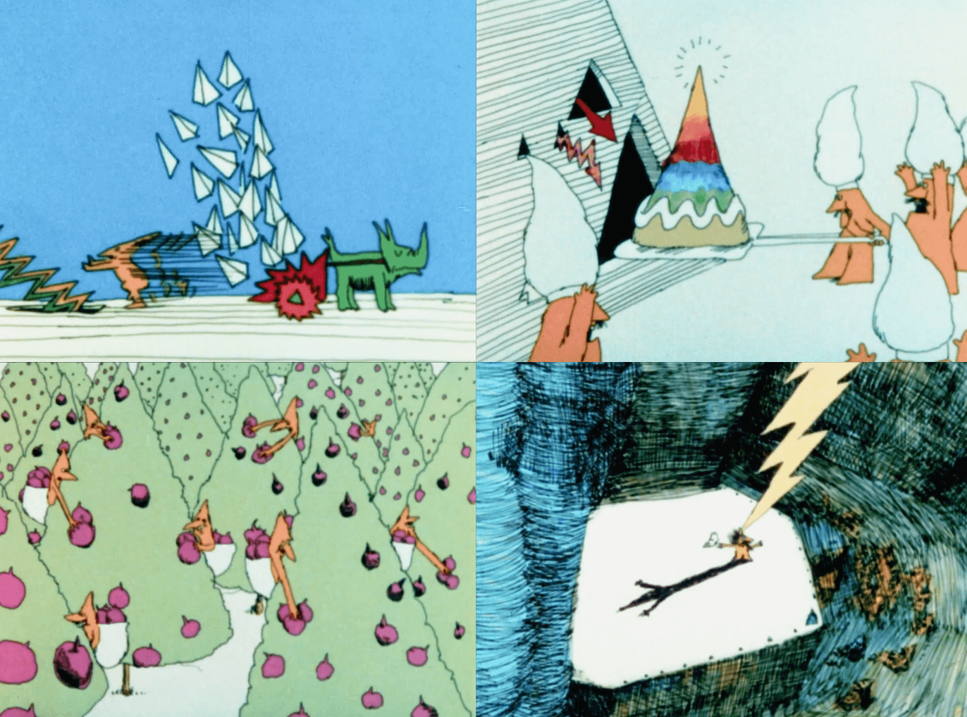 Lund and Nilsson worked together on the cartoon illustrations, and the animation was later taken up by Fred Wolf. Wolf's style (as most of us do) evolved considerably over the years, but in the 70's, the animation often had a "sketchy" and unrefined line quality. The best examples of this are his 1968 short The Box, which won the academy award for best animated short film, The Point!, and the animated segments in Free to Be... You and Me (1974).